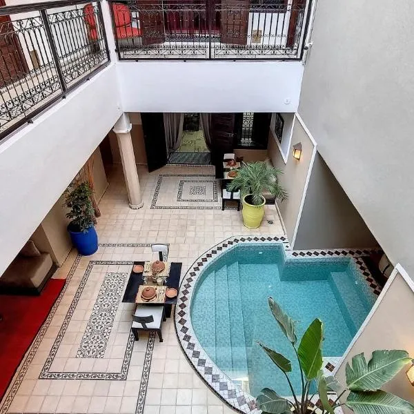Nằm trong bán kính 15 phút đi bộ từ Quảng trường Jamaâ El Fna, riad này có các phòng nghỉ máy lạnh với Wi-Fi miễn phí và sân hiên nhìn ra Nhà thờ Hồi giáo.