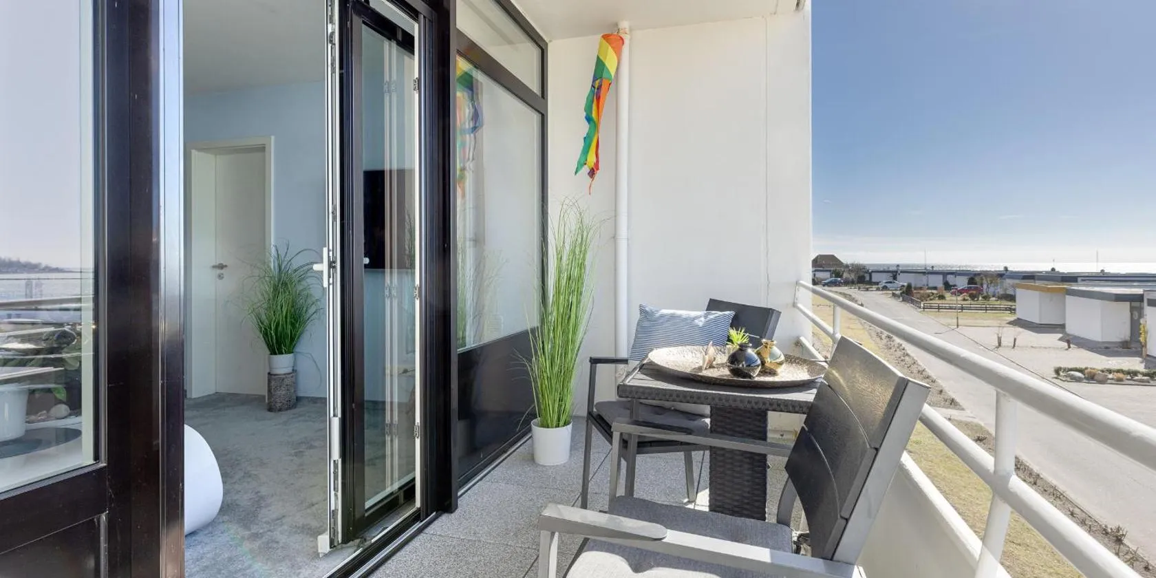 Nhìn ra hồ, Hochwertige Traumferienwohnung Fehmarn - Neue Tiefe Nähe Südstrand cung cấp chỗ nghỉ có sân hiên và ban công, cách Cầu Fehmarnsund khoảng 10 km.