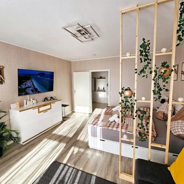 Offering garden views, Modernes City-Apartment Mülheim - Küche, Smart-TV, schnelles WLAN, Nähe Essen & Düsseldorf is an accommodation situated in Mülheim an der Ruhr, 6.2 km from Silberpalais and 6.3...