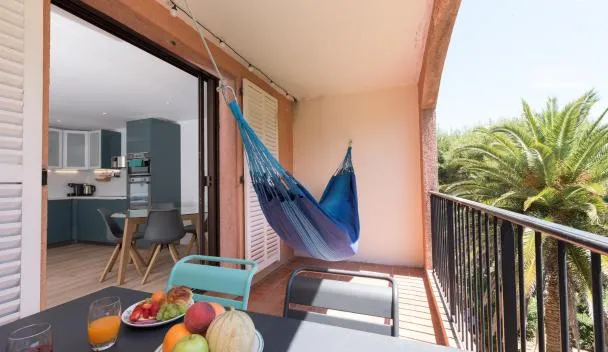 Nhìn ra núi, Rêves bleus, T2 proche plage des sablettes, Clim, Wifi, Place de parking cung cấp chỗ nghỉ có ban công, cách Trung tâm triển lãm và hội nghị Zénith Oméga Toulon khoảng 10 km.