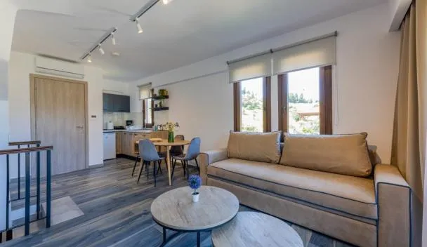 Cách Bãi biển Fourka 14 phút đi bộ, Edem Haven Luxury Apartment có hồ bơi ngoài trời theo mùa, sân hiên, điều hòa, ban công và Wi-Fi miễn phí.