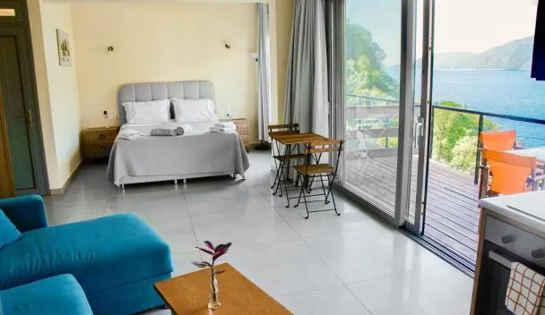 Nhìn ra biển, Cosmos Apartments cung cấp chỗ nghỉ có sân hiên và ban công, cách Bãi biển Vasiliki khoảng 2 phút đi bộ.
