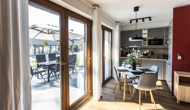 It is a brand new resort in a charming spa town. We were amazed by how perfectly and newly furnished everything was. You could tell that the apartment had been furnished with love. It was like a small home with everything you need at home. We had a ground floor apartment overlooking the pool, which was perfect for relaxation. The garden is beautiful and relaxing, and it was completely quiet both during the day and at night. There is also a children's playground with a sandy surface. The host was always available, very nice, and helpful. We recommend it to anyone who wants to experience a peaceful vacation with all the comforts.