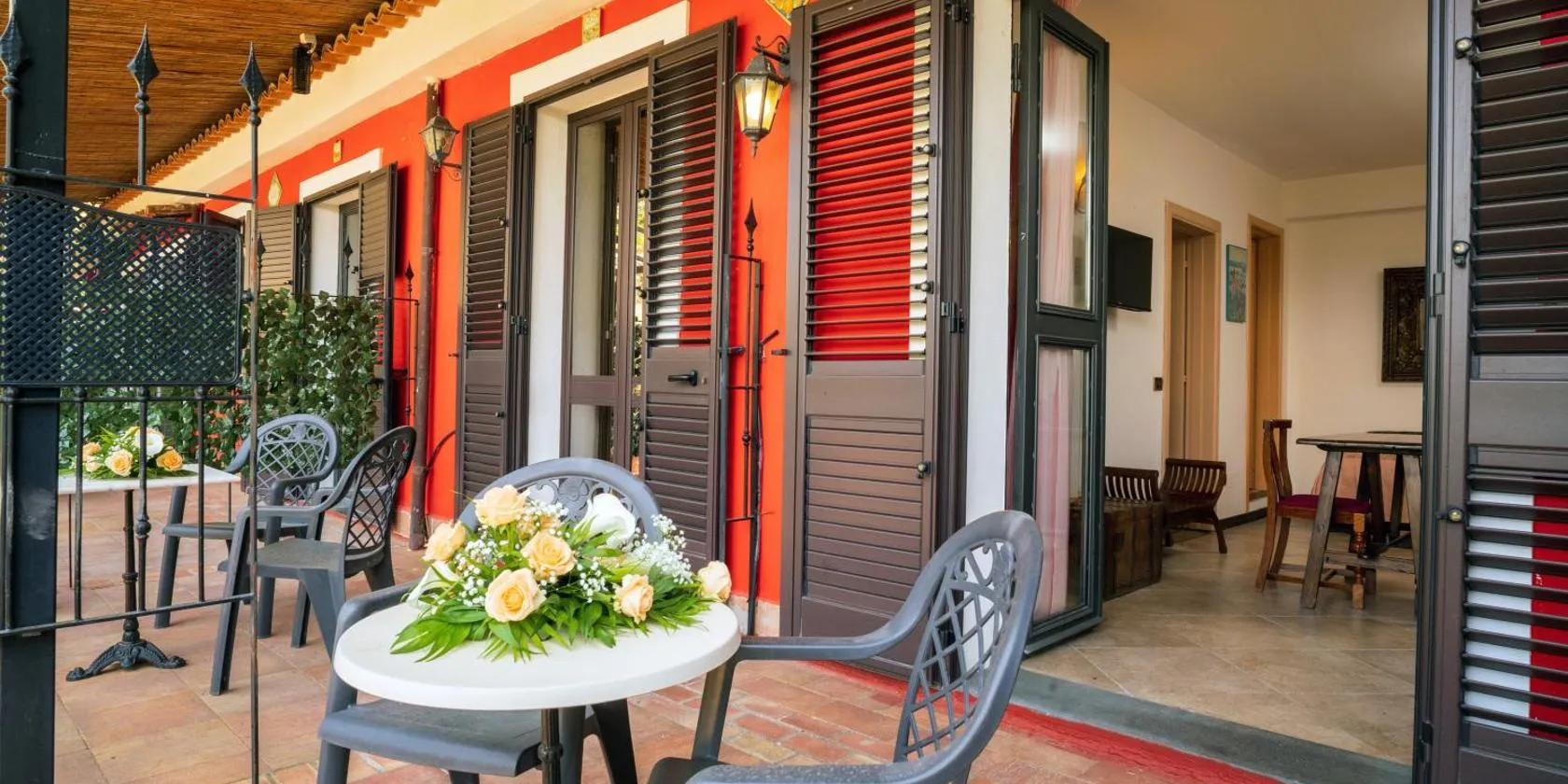 "Little Sicilian Home"-room with a private bathroom & kitchen -fridge - and shared a beautiful terrace on Hostel Taormina Center er et overnatningssted med en have, en terrasse og en bar der ligger i...