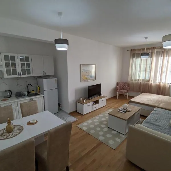Apartman Klara tọa lạc ở Petrovac na Moru, cách Bãi biển Petrovac 4 phút đi bộ, cung cấp sân hiên, khu vườn, cùng Wi-Fi miễn phí. Khách lưu trú tại căn hộ này có thể sử dụng sân trong.
