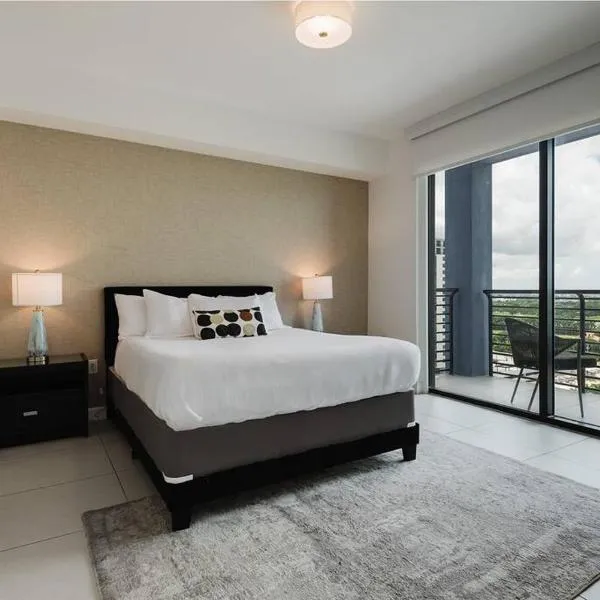 Nhìn ra thành phố, Luxury 1BD/1BT Apartment in Downtown Doral cung cấp chỗ nghỉ có trung tâm spa và chăm sóc sức khỏe và ban công, cách Trung tâm thương mại Dolphin khoảng 8.7 km.