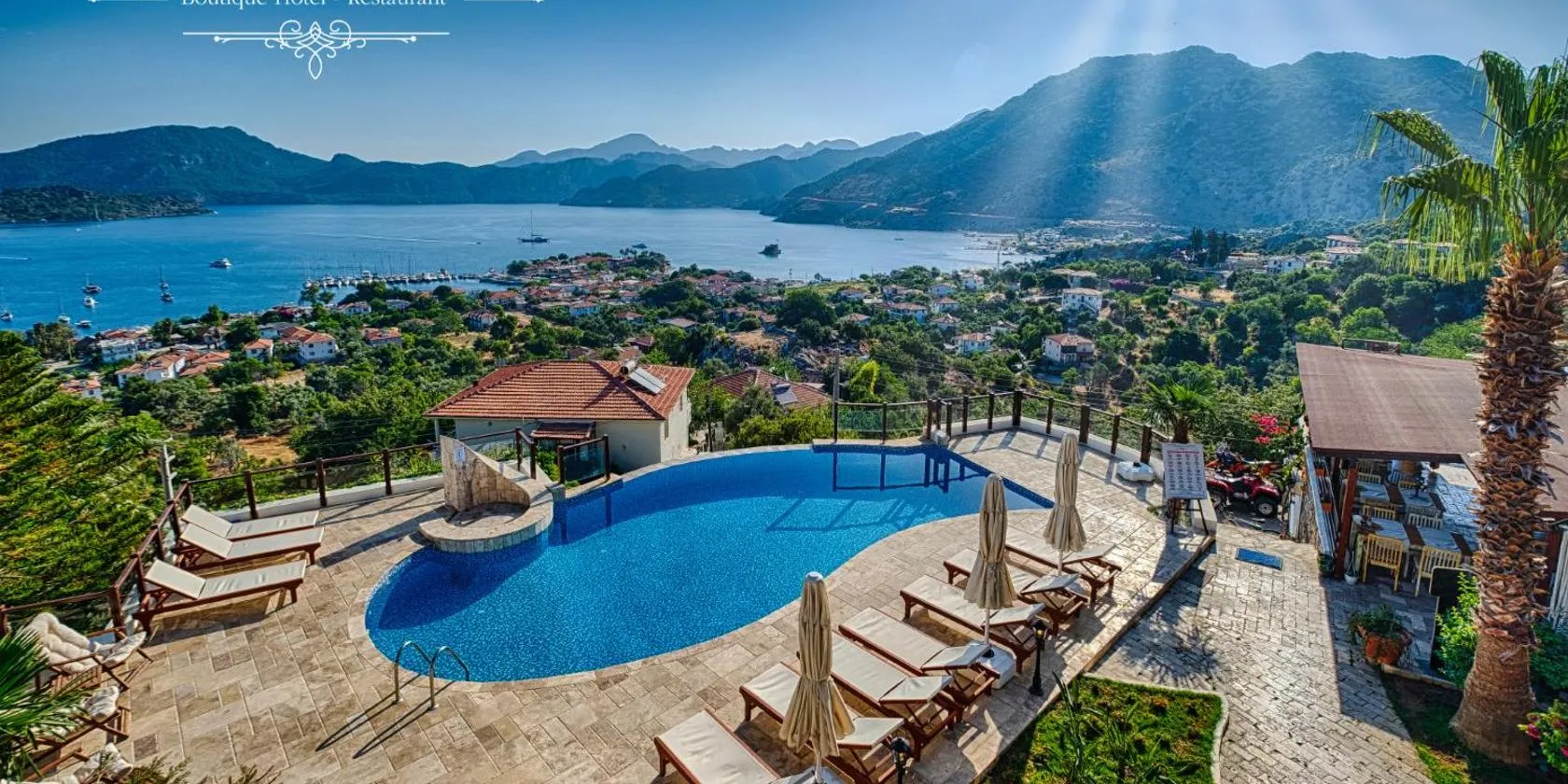 Lavanta Butik Otel Turunc features a seasonal outdoor swimming pool, garden, a terrace and restaurant in Turunc. Providing a bar, the property is located within 1.4 km of Turunç Plajı.