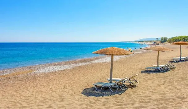The all-inclusive Mitsis Rhodos Village Beach Hotel & Spa is located along the beach of Kiotari, 12 km from Lindos.
