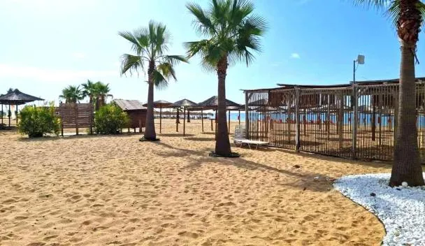 Very clean, cozy, close to the beach with sunbeds, mosaic floor in the bath,you feel like you are on the beach .