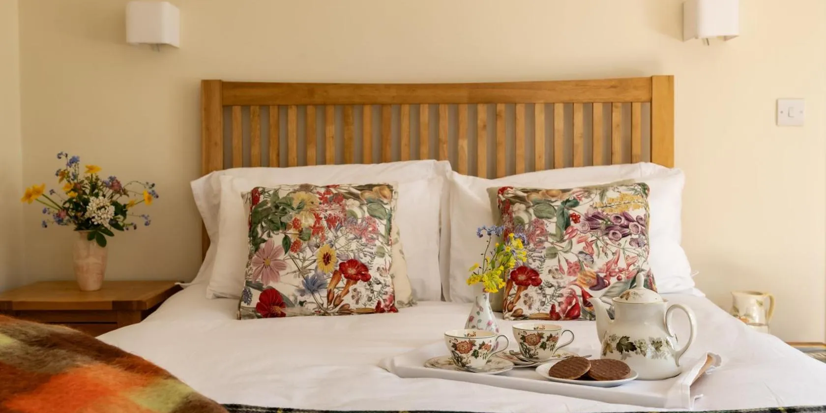 The Old Palace Lodge sits in the shadow of Lincoln Cathedral. It blends traditional features with modern amenities like flat-screen TVs.