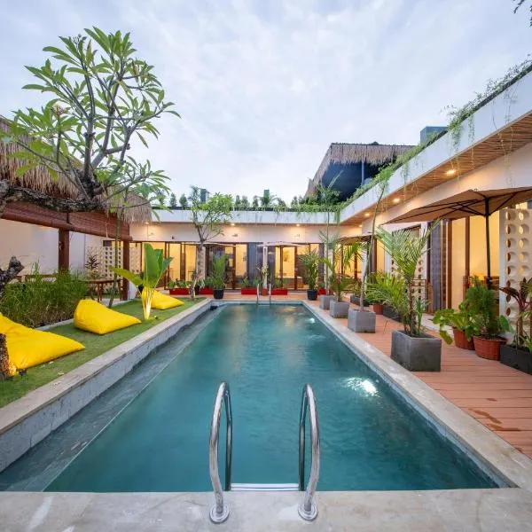 YO Villa Canggu ligger i Canggu, 2,2 km fra Echo Beach, og har en udendørs swimmingpool, en have og gratis privat parkering.