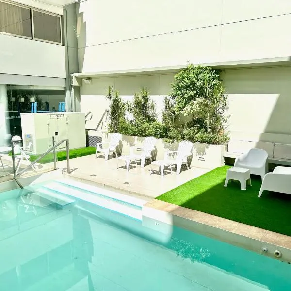 El Flaat Recoleta Plaza está situado en Buenos Aires, en el barrio de Recoleta, y cuenta con bañera de hidromasaje y piscina al aire libre.