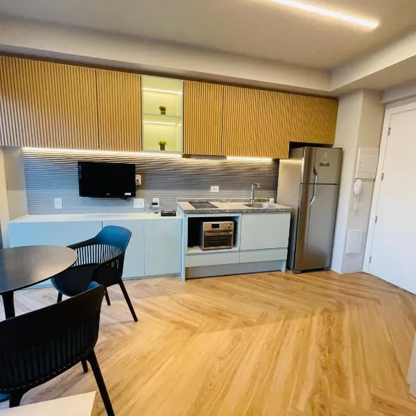 Set in Cotia in the Sao Paulo State region, Flat Studio Charmoso New Studio Granja Viana Cotia has a balcony. This property offers a rooftop pool and free private parking.