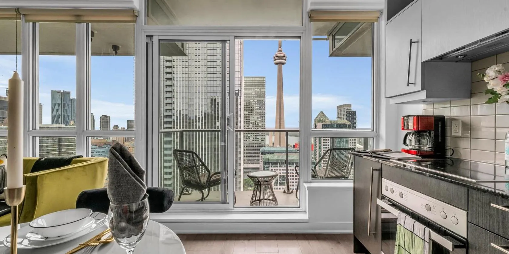 Nằm tại vị trí thuận tiện ở khu vực trung tâm Toronto, Newly updated 3BR, 2Bath in Downtown Toronto beside Union Station & Scotia Bank Arena! nhìn ra thành phố và sân hiên.