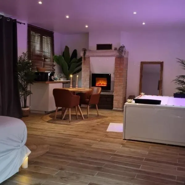 Suite de charme avec JACUZZI illimité et jardin privatif ở Saint-Prix cung cấp chỗ nghỉ chỉ dành cho người lớn có khu vườn, sân hiên và quầy bar.