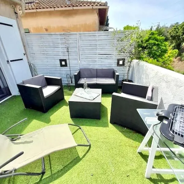 Les Pucines bis Bas de villa 29 m2 luxe rez de jardin climatisation plein sud, apresentando um jardim, localiza-se em Six-Fours-les-Plages, a 11 km de Zénith Oméga Toulon e 30 km de Circuito de Paul...