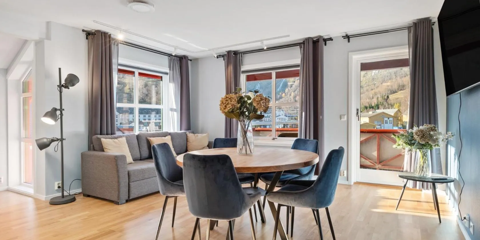 These apartments sit on the route from Aurland to Lærdal, just 17 km from Flåm and its iconic railway.