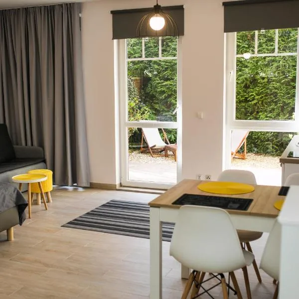Nằm ởPobierowo, cách Bãi biển Pobierowo 4 phút đi bộ và Miedzyzdroje Walk of Fame 39 km, Pod Winogronem - Apartamenty z basenem i wyżywieniem cung cấp chỗ nghỉ có Wi-Fi miễn phí, khu vườn với sân chơi...