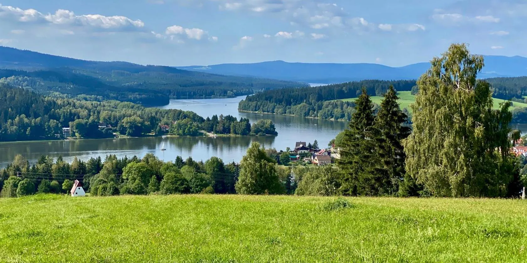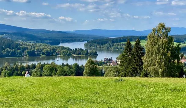 Nhìn ra khu vườn, Pension Vyhlídka tọa lạc ở Přední Výtoň và có nhà hàng, phòng chờ chung, quầy bar, khu vườn cũng như sân hiên. Khu cắm trại có WiFi và chỗ đậu xe riêng miễn phí.