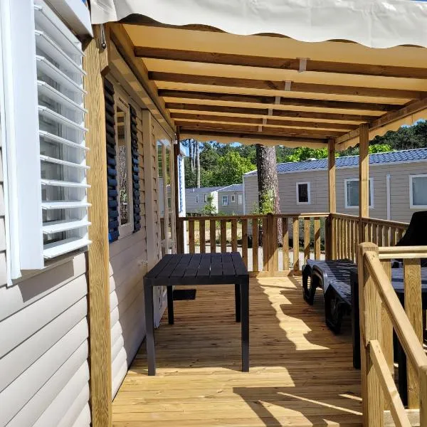 Featuring air-conditioned accommodation with a heated pool, Mobilhome 40 m2, tout confort, 3 chambres, 2 sdb, 2 WC, TV, lave vaisselle, terrasse is located in Lège-Cap-Ferret.