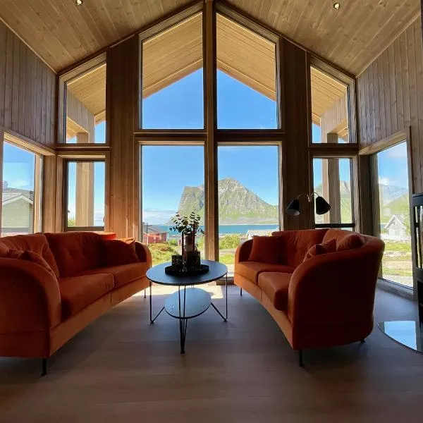 Situated in Offersøya and only 2.3 km from Hauklandstranda Beach, Cabin Panorama Lofoten with Jacuzzi Magic view features accommodation with mountain views, free WiFi and free private parking.