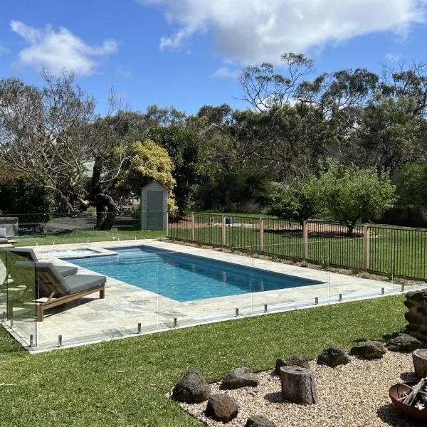 Oakdean Resort- Pool, Spa, Beach, Sleep 10 nằm ở Ocean Grove với hồ bơi ngoài trời và nhìn ra hồ bơi.