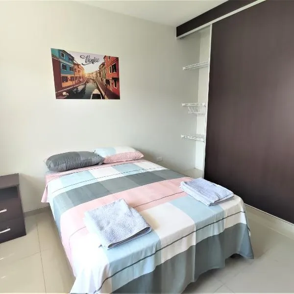 Featuring air-conditioned accommodation with a balcony, Relajate en Moderno y Elegante Apartamento Familiar con amplio balcón, en Zona Residencial Avenida Beni is located in Hamacas.