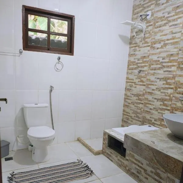 Boasting garden views, Sítio com piscina, na estrada de Aldeia Velha e rio a frente da porteira provides accommodation with a patio, around 49 km from Whale Square.