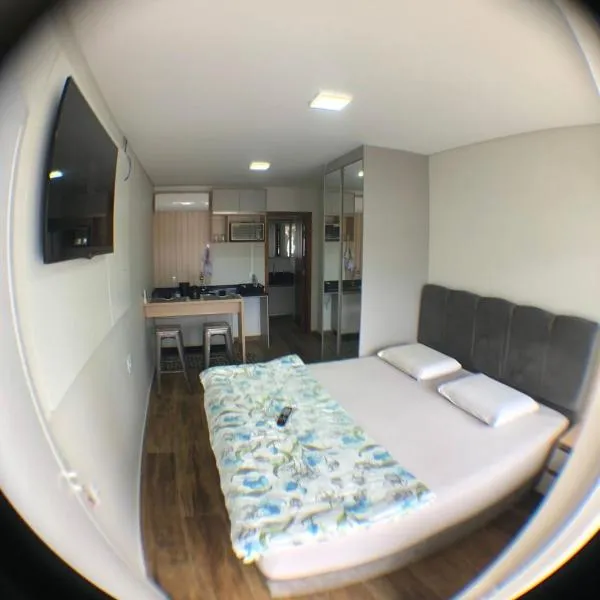 Located in Piçarras, 400 metres from Praia de Piçarras and 2.9 km from Anjo Dourado, Studio moderno com piscina 350m do mar offers air conditioning.