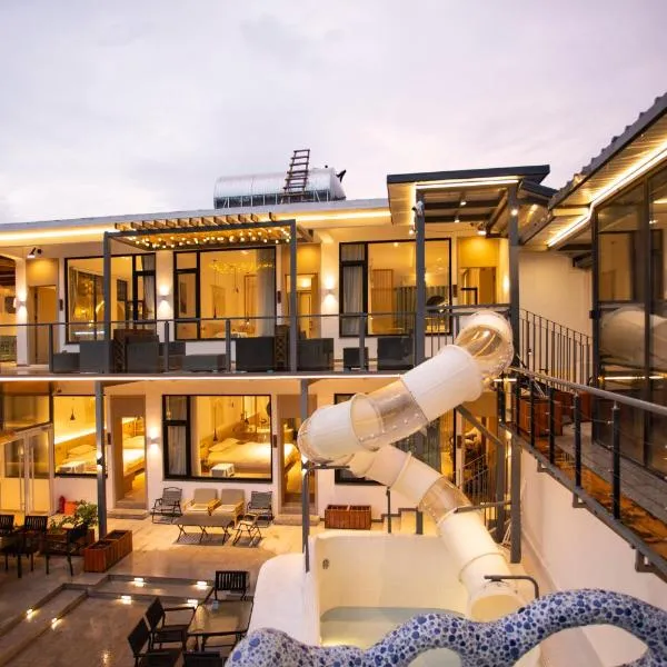 Nhìn ra núi, 北京丛林里野奢汤泉酒店 ở Huairou cung cấp chỗ nghỉ có hồ bơi ngoài trời theo mùa, khu vườn, sân hiên, quầy bar và tiện nghi BBQ. Wi-Fi miễn phí được cung cấp ở toàn bộ chỗ nghỉ.