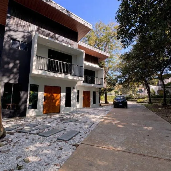 Em Villarreal, Oshy Sunset Apartments - 10 mins from Tamarindo apresenta acomodações com acesso Wi-Fi gratuito, ar condicionado e acesso a um jardim com uma piscina exterior.