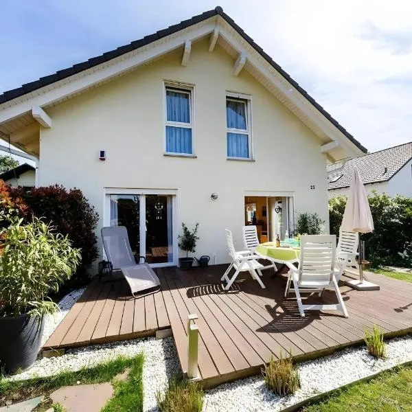 Apresentando um jardim, um salão partilhado e um terraço, Bodensee-Haus - Ferienhaus am Bodensee mit Garten fornece acomodações em Radolfzell am Bodensee com acesso Wi-Fi gratuito e vista do jardim.