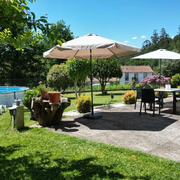 Apresentando vista do jardim, Casa America apresenta acomodações com uma piscina exterior sazonal e pátio, a cerca de 21 km de Catedral de Santiago de Compostela.