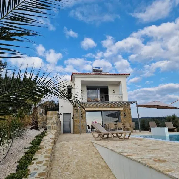 Villa Vounaria ligger i Vounaria med havudsigt. Her er en sæsonåben udendørs swimmingpool, en have og en terrasse. Der er også gratis wi-fi.