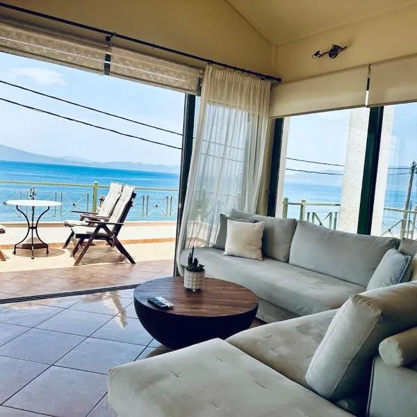 Ofreciendo vistas al mar, Villa Amatheia, Beachfront ofrece hospedaje con un jardín y balcón, y se ubica aproximadamente a 10 km de Agios Konstantinos Port.