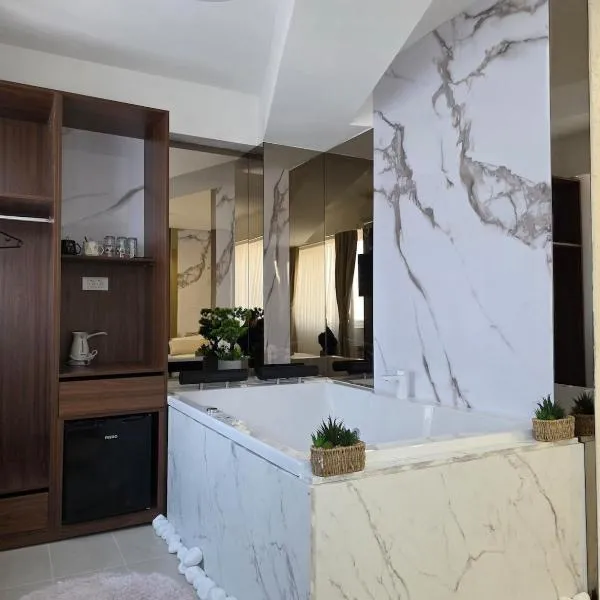PETKOV5KI LuxuryApartment nằm ở Skopje và có bể sục. Chỗ nghỉ điều hòa này cách Cầu Stone Bridge 6.4 km, khách có thể sử dụng WiFi miễn phí và chỗ đậu xe riêng có sẵn trong khuôn viên.