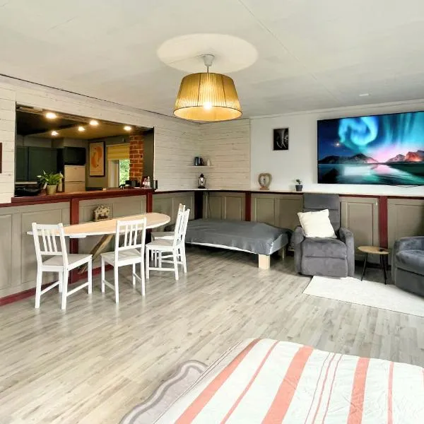 Gemütliche Blockhütte mit Außentoilette und Badezimmer im Haupthaus encontra-se em Jörn e providencia um terraço. O alojamento tem jardim e estacionamento privado gratuito.