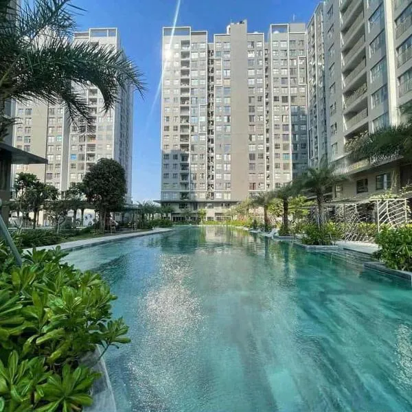 Cozy 1-Bedroom Apartment at Ehome Ben Luc Waterpoint Block A5 se află în Ấp Nhì (1) și include o piscină privată, o bucătărie și vedere la grădină.