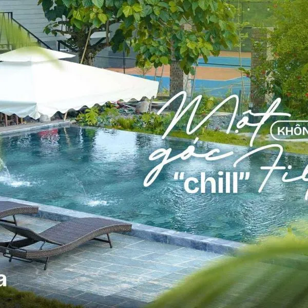 Nhìn ra núi, Dốc Chill villa view núi, 3PN, biệt lập riêng khu, bể bơi vô cực, gần Ba Vì, Hà Nội cung cấp chỗ nghỉ có hồ bơi ngoài trời theo mùa, phòng chờ chung và sân hiên, cách Sân vận động Quốc...