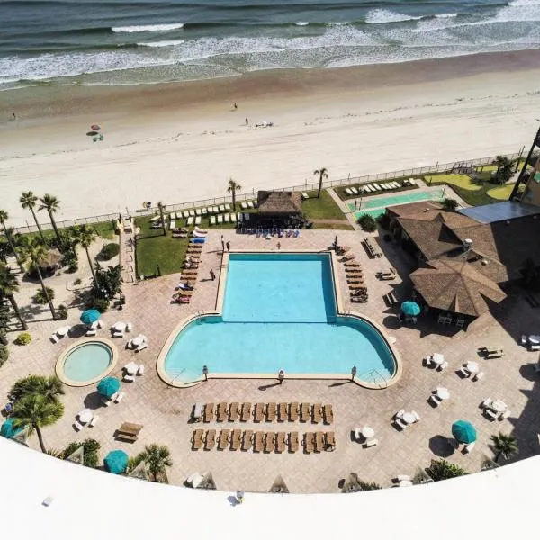 Beautiful Ocean view Condo with huge TV está ubicado en Daytona Beach y ofrece alojamiento con vistas a la ciudad, una pileta al aire libre, salón compartido, una terraza, un restaurante y un bar.