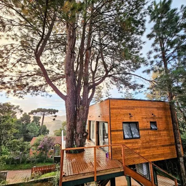 Chalé Sabiá - Refúgio Cantos da Serra ligger ca. 2,7 km fra Campos do Jordao Bus station og har en terrasse, balkon og udsigt til en have.