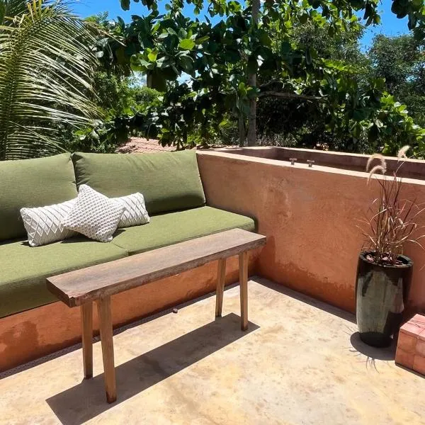 Casa Estrela Luz - Xandó - Caraiva ligger ca. 4 minutters gang fra Caraíva Strand og har udsigt til en have og en balkon.
