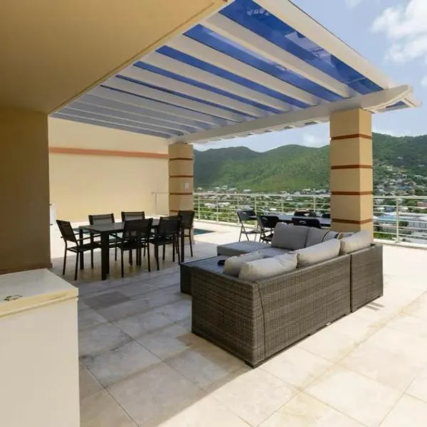 THE VILLAS ON GREAT BAY, Villa LAVINIA #9 se află în Philipsburg și oferă cazare cu WiFi gratuit și vedere la oraș, precum și o piscină în aer liber, o grădină și o terasă.