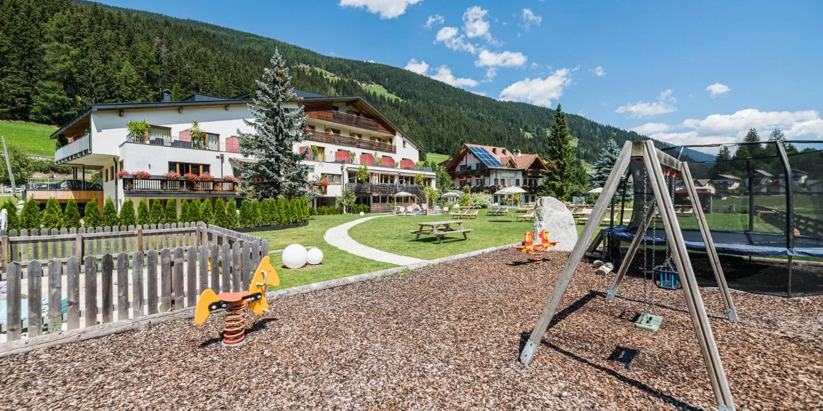 This hotel is located in the centre of San Candido and is surrounded by lots of greenery.