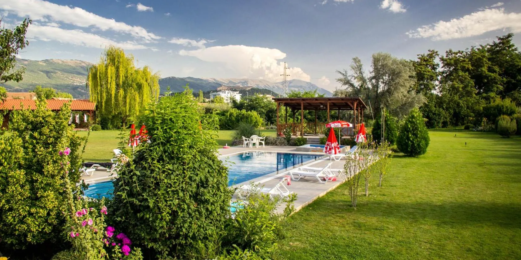 Offering 3 (three) free seasonal outdoor pools with parasols and sunbeds, Vila Bisera is located 550 metres from the Ohrid Lake, 7 km from downtown Ohrid, in a quiet neighborhood called Lagadin.