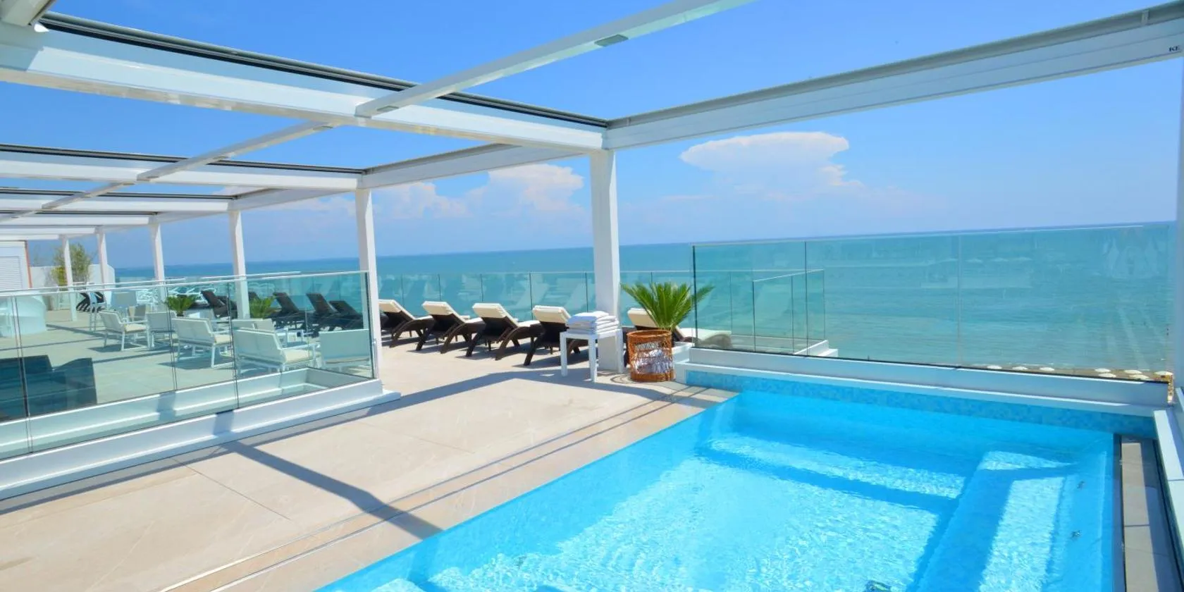 Hotel Europa Lignano boasts a tranquil and central waterfront location, its own private beach section and a covered veranda with bar and lounge overlooking the sea.