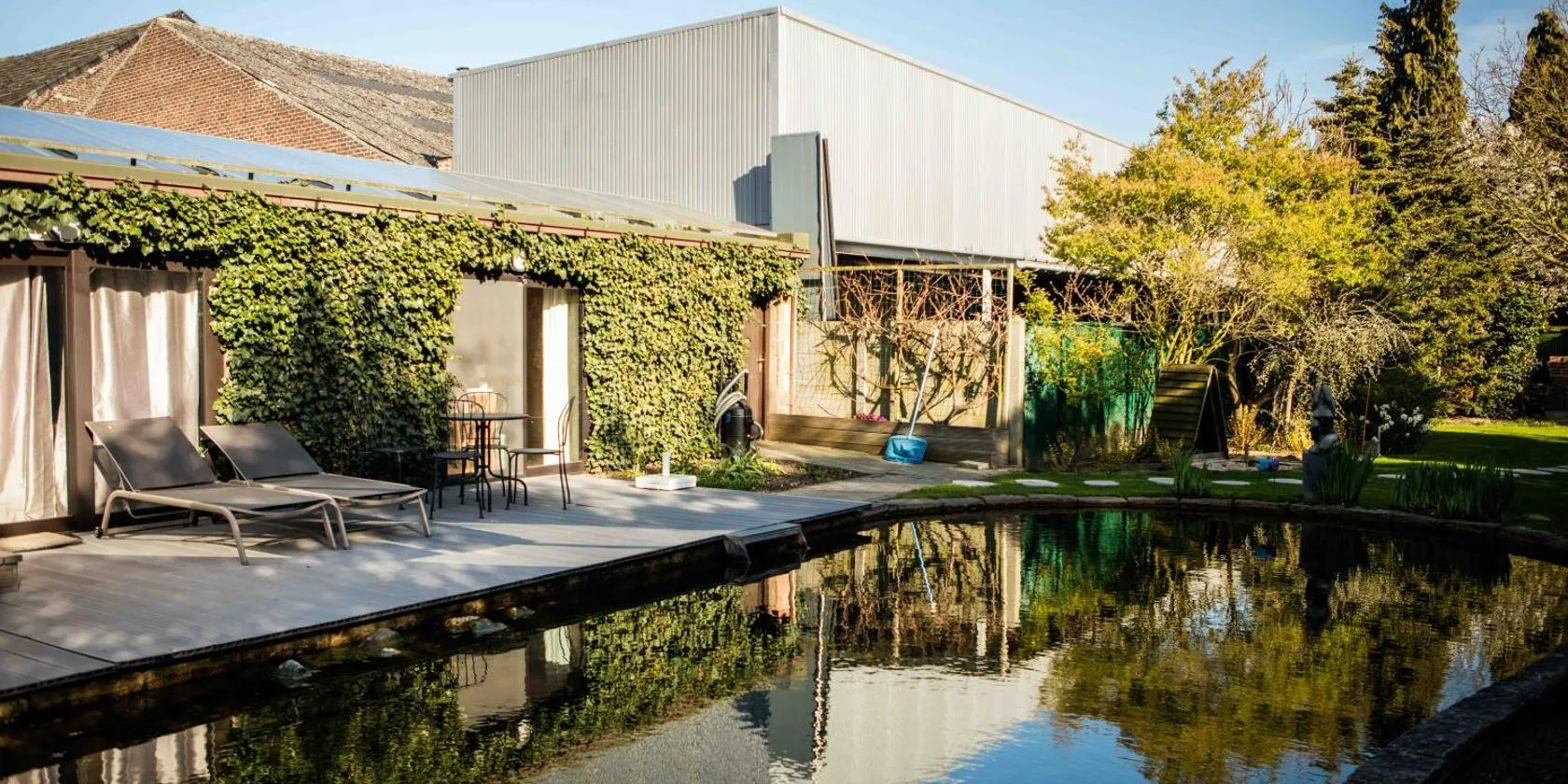 Vakantiewoning De Vliergeit in Limburg - Haspengouw ligger i Hasselt. Her er en terrasse, gratis wi-fi og udsigt til en have.