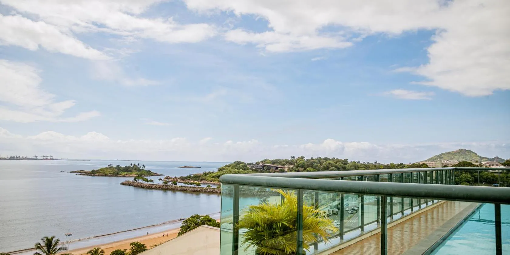 G1104 FRENTE MAR com varanda Piscina Ar cond Garagem ligger i Vila Velha og har aircondition og en privat pool, havudsigt og en terrasse. Dette feriehus har en balkon samt gratis wi-fi.