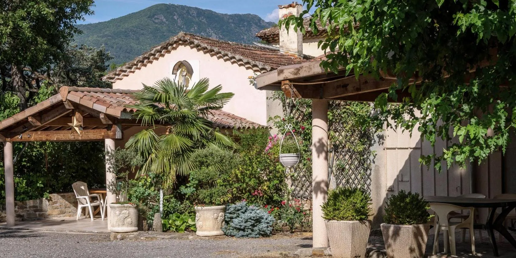 Les Sources Gîte Les pêchers ligger i Chambonas og har en gårdhave. Overnatningsstedet ligger 38 km fra Pont d'Arc og har en udendørs swimmingpool samt gratis privat parkering.