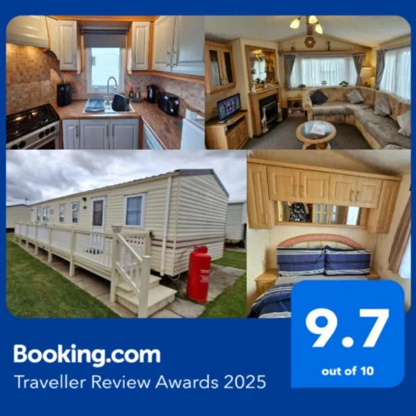 Tọa lạc ở Ingoldmells, cách Bãi biển Ingoldmells 14 phút đi bộ và Công viên nước Skegness Butlins 3.8 km, Coral beach 8berth caravan có sân hiên, quầy bar và Wi-Fi miễn phí.